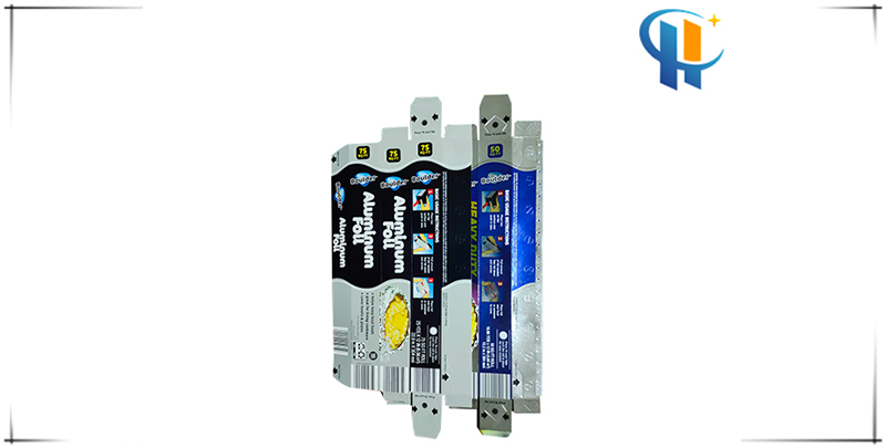 4.电机动力驱动模具上下冲切,并同时将马口铁锯条,铝箔卷装订在彩盒纸板上所要求的位置。