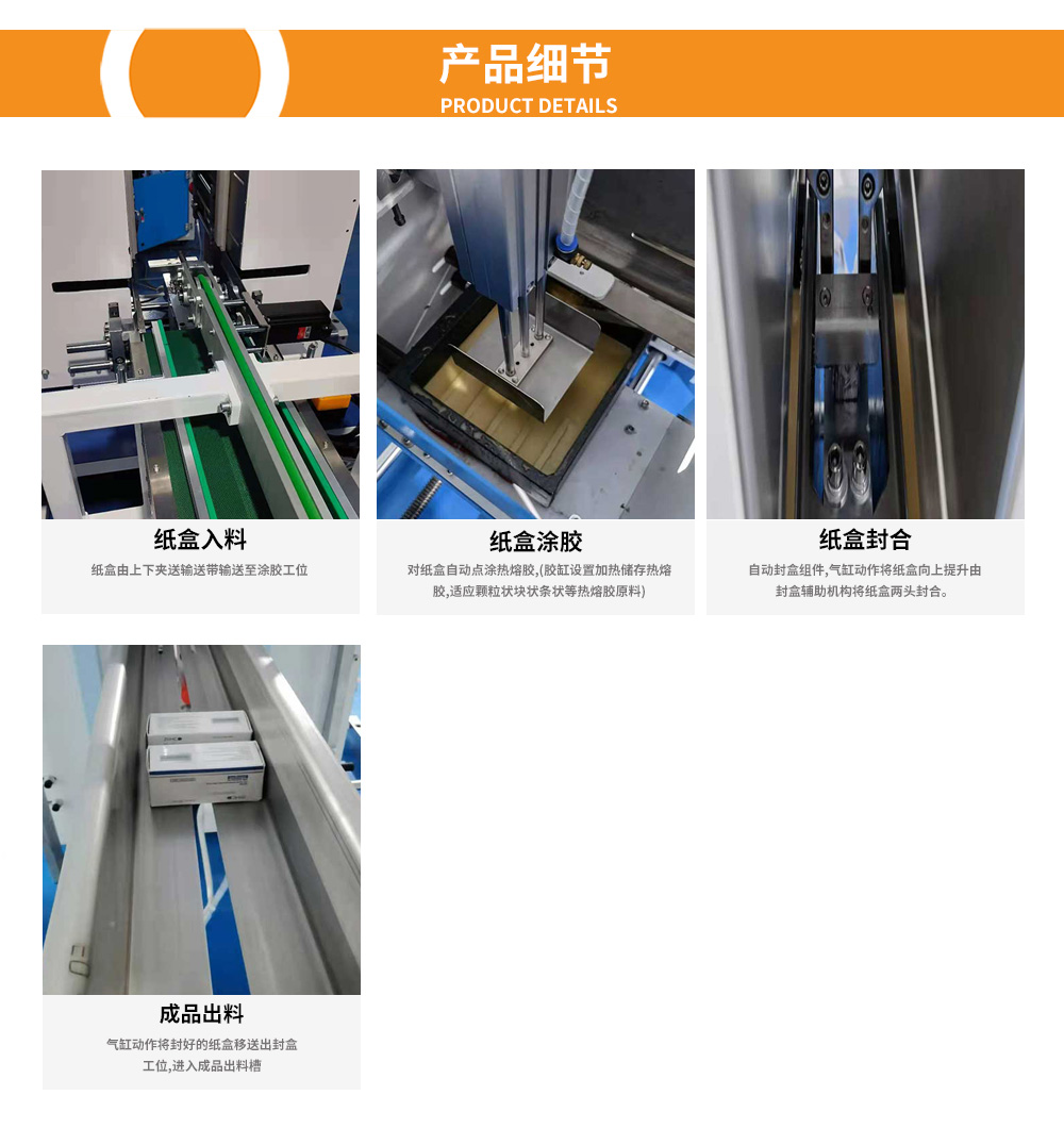 封盒机,对纸盒两端进行自动打点热熔胶封盒封口