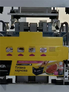 纸盒由机械手输送至成型工位后,模组自动冲压纸盒成型