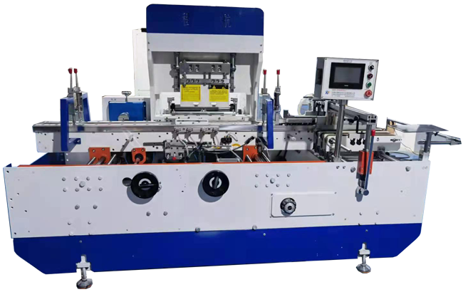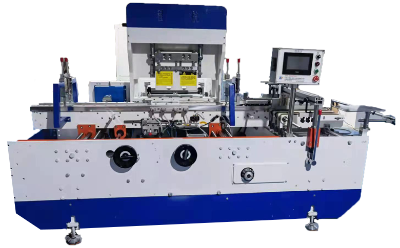 电机驱动模具自动冲切卷料,将卷料冲压成锯条,一并装订到纸盒上。