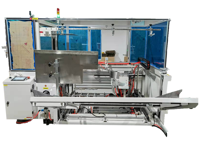 开箱机是一款连接流水线工作的包装机械,这款包装机械的主要功能就是将包装产品的纸箱进行打开,成形、下底折叶折曲.然后将产品放入到纸箱内,然后在进行封箱,这是一个简单的装箱过程