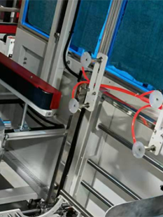 采用立式储存纸板方式,并可随时补充纸箱板,不用停机。料架上缺少纸板时自动报警提示。