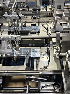 从料仓自动抓取纸盒后,由伺服电机驱动移送至纸盒成型工位