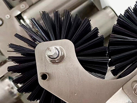 毛刷滚轮抚平胶带, 使胶带平整,泡沫箱 整体美观大方